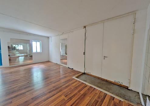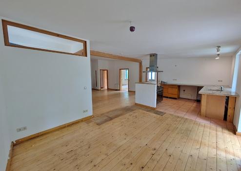 - aktuell Unterteilung in vier Räume, teilweise mit Laminatboden