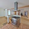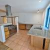 - Küchenbereich mit Holzunterschränken und Gasherd aus dem Baujahr
