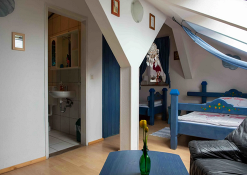 Zahlreiche Außenstellplätze für Gäste und Personal sowie die gepflegte Außenanlagen mit Garten- und Erholungsflächen runden das Bild ab. Das Gebäude wurde regelmäßig instand gehalten und befindet sich in einem soliden Zustand. Besonders bemerkenswert ist, dass nahezu die komplette Inneneinrichtung der Zimmer und der Gemeinschaftsräume in Eigenleistung der bisherigen Betreiber gefertigt wurde. Dies verleiht dem gesamten Objekt einen einzigartigen Charme.