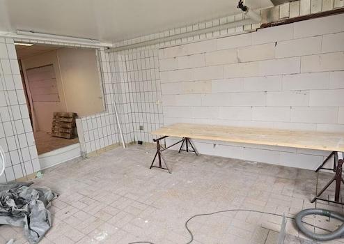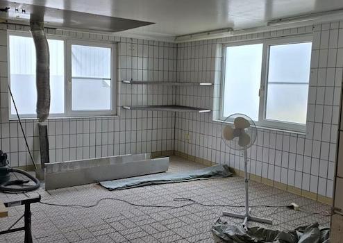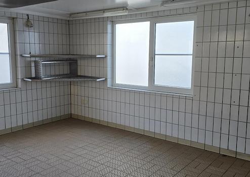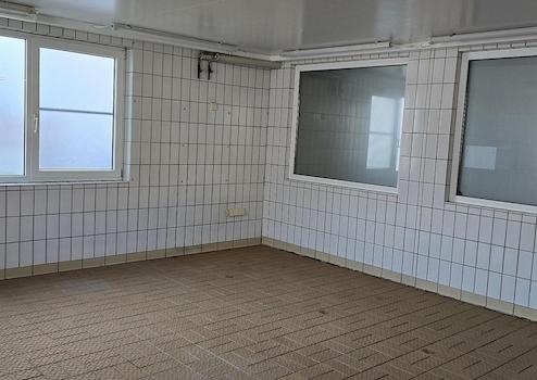 Das Gebäude ist massiv gebaut. Derzeit sind die Räume noch unrenoviert, nach Absprache kann vieles nach Mieterwunsch durch Mieter oder Vermieter entsprechend angepasst werden. Beispielsweise wird die Toilette neu gemacht, auf Wunsch auch mit Dusche oder separatem Kunden-WC etc. möglich. Die Böden sind gefliest, teilweise sind Fliesen an den Wänden. Eine neue Klimaanlage für gutes Raumklima wird ebenfalls eingebaut. Strom, Starkstrom (32A und 16A) und Wasseranschluss vorhanden. Aktuell sind die Räume unrenoviert und können entweder vom Mieter selbst oder von Vermieterseite (Berücksichtigung bei Miete) entsprechend den Anforderungen der Mieter gestaltet werden.