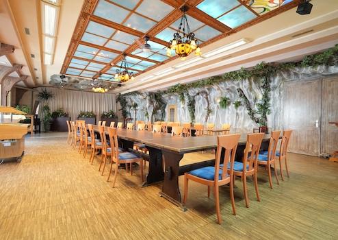 Ein besonderes Highlight ist das große Restaurant mit angrenzendem Biergarten auf der Außenterrasse. Darüber hinaus stehen drei großzügige Säle zur Verfügung: Ein großer Festsaal bietet den idealen Rahmen für Hochzeiten und Feierlichkeiten, ein weiterer Saal lässt sich flexibel in zwei Bereiche teilen. Ein zusätzliches Plus ist die hauseigene Bundeskegelbahn, die sich hervorragend für private Feiern oder Kegelclubs eignet.