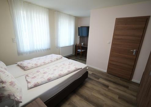 Das Hotel gliedert sich in zwei Bauteile und umfasst sechs Einzelzimmer und vier Doppelzimmer, die alle geschmackvoll eingerichtet sind, um den Gästen einen komfortablen Aufenthalt zu bieten. Zusätzlich kann ein Handwerkerzimmer separat vermietet werden. Die Außenanlagen des Anwesens sind ebenso gut ausgestattet, mit einer einladenden Terrasse, die zum Verweilen im Freien einladen. Der hintere Hoteltrakt mit vier Einzel- und zwei Doppelzimmern wurde 2015 neu errichtet, sowie die dazugehörige Terrassenanlage für Hotelgäste.