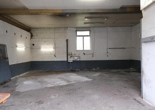 Halle, Höhe: 3,86 m, Tor: 3,86 m hoch und 3,99 m breit, 100 qm, geeignet als Lager und für Produktion. Strom + Wasser vorhanden. Es gibt keine Heizung.