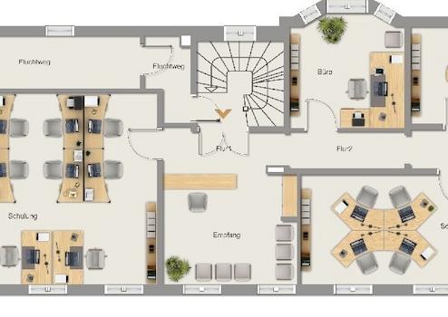 Im 1. Obergeschoss und Dachgeschoss entstehen repräsentative Büroräume, auf deren Ausstattung Sie noch Einfluss nehmen können. 6 Zimmer auf einer Ebene + Funktions- und Sanitärräume im Dachgeschoß bieten vielfältige Nutzungsvarianten. Überzeugen Sie sich selbst von den Qualitäten Ihrer neuen Repräsentanz Ideal, wenn sich mit Ihrer Nutzung mögliche Synergien mit dem bereits im Haus ansässigen Notariat entwickeln.