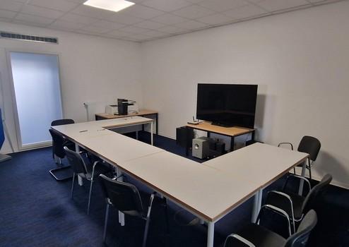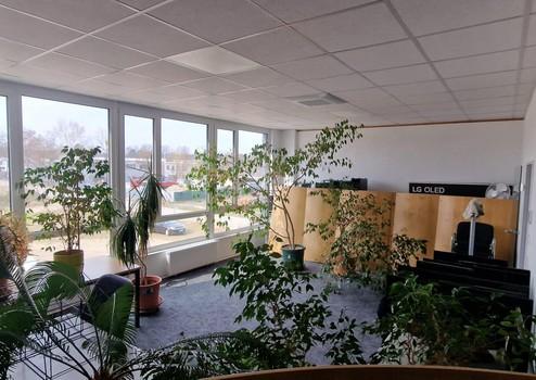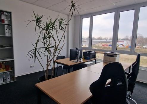 Büroräume in 1. Etage in einem modernen Neubau, mit Klimaanlage, Server + Verkabelung, mehrere Büros verschiedener Größe, ein Konferenzraum, große gut ausgestattete Küche für die Mittagspause. Eine teilmöblierte Vermietung ist nach Absprache möglich.