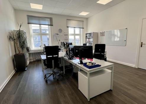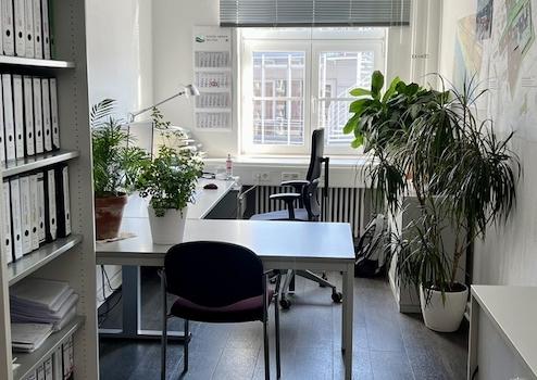 Der m²-Preis beträgt für die Büroflächen 10,89 Euro netto / m² und für die Allgemeinflächen 7,51 Euro netto / m². Die verfügbaren Räume sind mit einem grünen Haken versehen und im Grundriss mit m²-Angaben gekennzeichnet. Die Bilder haben einen Bezug zu den Raumnummern. Miete für das Mobiliar ist separat zu verhandeln.
