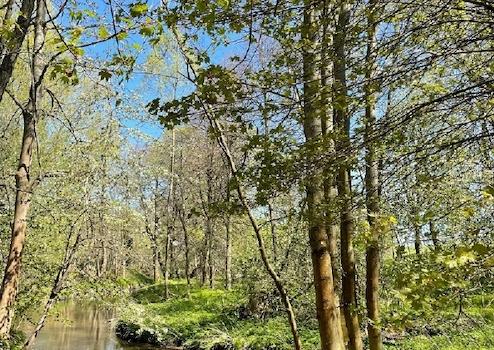 - bewaldeter Garten (2.860 m²) mit verlandetem Teich, unten Überschwemmungs- und FFH-Gebiet
