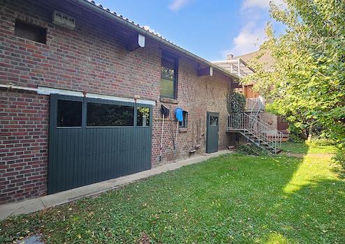 Seitlich angebaut ist eine Halle (ehemals Siebdruckerei), die Ihnen im Erd- und im Obergeschoss jeweils ca. 250 m² Nutzfläche bietet. Beide Etagen sind vom Wohnhaus aus zu begehen.