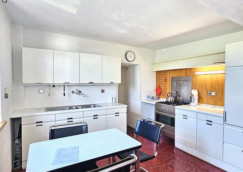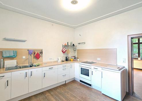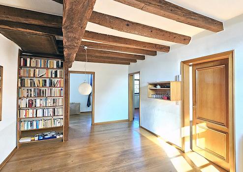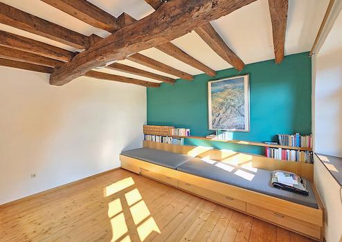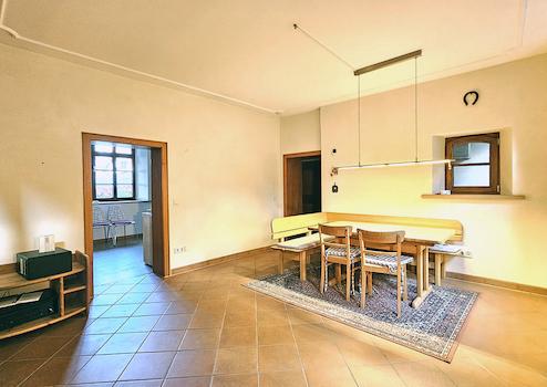 Früher wurde diente das Anwesen als Einfamilienhaus, dann wurde im hinteren Bereich ein direkter Zugang zum Obergeschoss geschaffen, um es als Zweifamilienhaus zu nutzen.