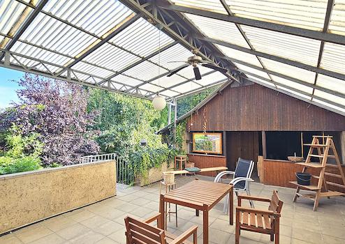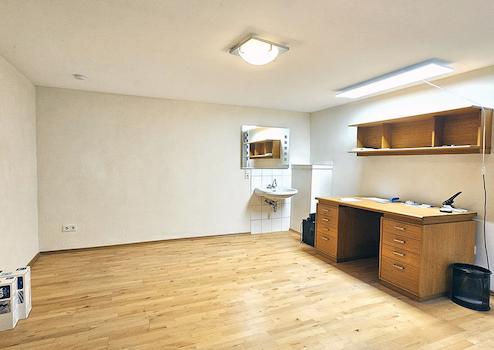In einem Seitenflügel (hinter dem Haus) sind ein Lagerraum, der Heizungsraum sowie eine Werkstatt untergebracht.