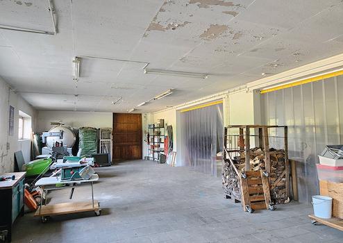- Halle mit großen Schiebetüren (ca. 500 m² Nutzfläche)