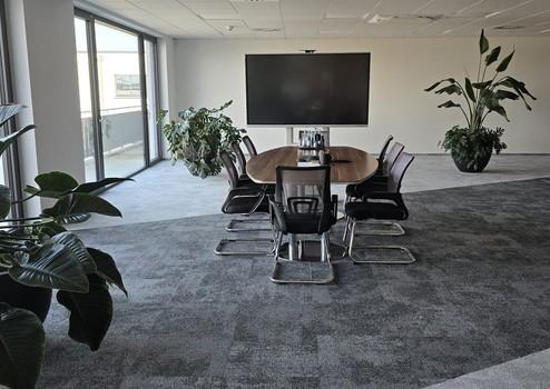 Größere Unternehmen können die komplette Büroetage anmieten. In dieser befinden sich bereits 3 Einzelbüros, ein Empfangsbereich, ein großer Konferenzraum sowie alle notwendigen Sanitärräume. Bei Bedarf kann die Bürofläche weiter in Einzelbüros aufgeteilt werden.