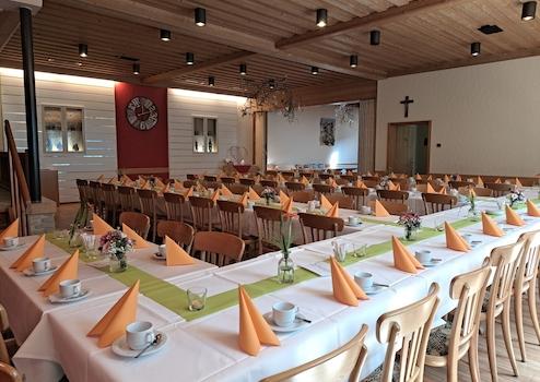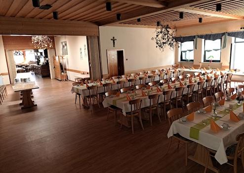 Die Gaststätte bietet insgesamt ca. 265 Sitzplätze ( davon ca. 30 im Wirtshaus, 30 im Nebenzimmer, 120 im Saal, 45 im Wintergarten und 30 im Biergarten) Es verfügt mit einer Nutzfläche von ca. 158 m² über einen Gastraum und einen Saal mit Bühne. Ein Wintergarten wurde 1998 angebaut mit zusätzlich über 60 m². Für den Sommerbetrieb gibt es eine schöne Terrasse. Die vorhandene Küchenausstattung wurde vor ca. 10 Jahren teilweise erneuert, wie z. B. die Lüftung und der Gasherd.