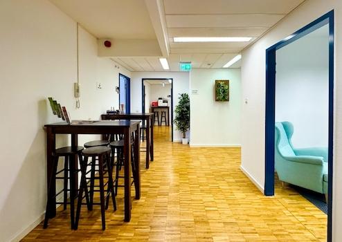 Der barrierefreie Zugang über einen Personenaufzug ermöglicht einen komfortablen Eintritt in die Fläche, die über einen einladenden Empfangsbereich verfügt.