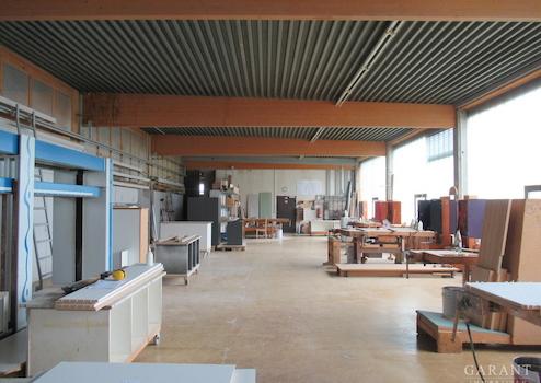 * überdachte Stellfläche mit Rolltor für drei LKW bis 7,5 t - optimale Voraussetzungen für Lieferverkehr