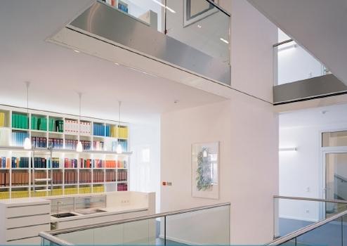 "Reflexe der Moderne" - Unter Wahrung der gleichförmigen Fassadenstruktur mit ihren flachen Risaliten und der kraftvollen Attika wurde das Objekt hochwertig saniert. Die Rationalität der Struktur spiegelt sich in der inneren Neuorganisation des Gebäudes wieder.