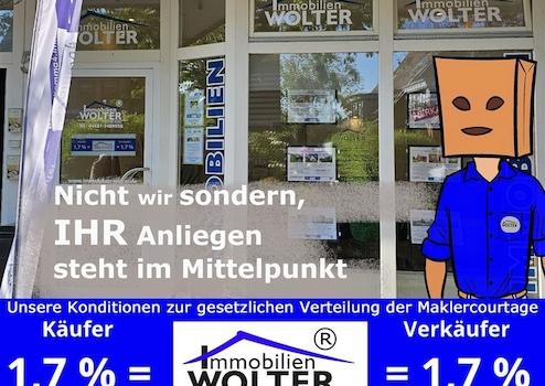 Provision, zahlbar vom Mieter: 2,38 Mieten inkl. MwSt., fällig bei Abschluss des Mietvertrags zu zahlen an Immobilien Wolter, Martina Wolter.