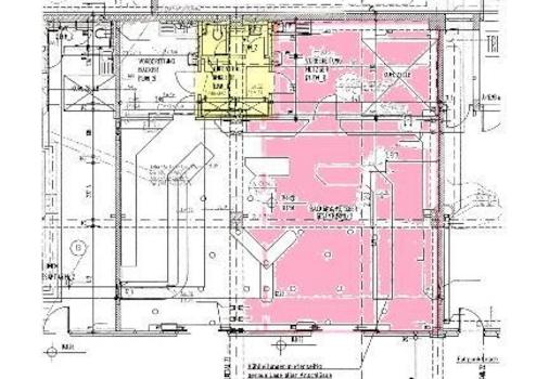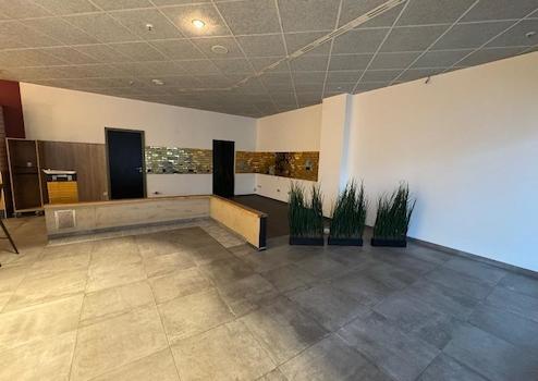 Ladengeschäft mit Fliesenboden, WC-Einheit und Personalraum in gemeinschaftlicher Nutzung mit benachbartem Bäckerei Shop