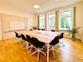 Für Besprechungen steht ein moderner Meetingbereich bereit.