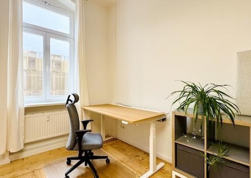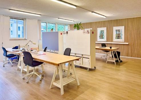 Insgesamt stehen 21 voll ausgestattete Büroräume von 18 m² bis 57 m² zur Verfügung, die mit elektrisch höhenverstellbaren Schreibtischen, ergonomischen Office-Stühlen und Whiteboards optimal auf produktives Arbeiten ausgelegt sind.