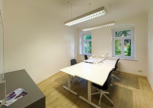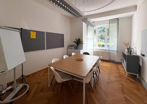 Für Besprechungen und Team-Meetings steht ein separater Meetingraum bereit.