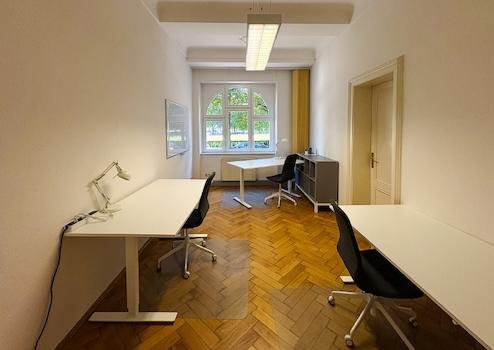 Ergänzend können je nach Bedarf eine Telefonbox sowie zusätzliche Services – etwa Monitore oder weitere Büroausstattung – flexibel hinzugebucht werden. Ein gemeinschaftlich nutzbarer Drucker rundet das Angebot ab und unterstützt die tägliche Büroorganisation.