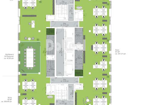 1. OG Tower ca. 829,53 m² 15,00 €/m²/mtl. zzgl. NK und USt.