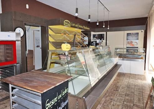 Die Bäckerei teilt sich auf in einen Verkaufsraum zur Straße hin, ergänzt durch einen Büro- und Lagerraum, die sich im vorderen Gebäudeteil befinden. Durch einen Flur gelangen Sie in die beiden Backstuben und in die angrenzenden Räume. Ein Nebengebäude, in dem sich die Toiletten befinden sowie der Innenhof ergänzen diesen Bereich.