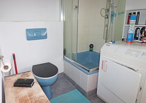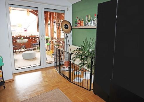Im Dachgeschoss befindet sich eine kleine Wohnung mit Küche, Durchgangszimmer, Schlafraum und Duschbad sowie eine 3-Zimmer-Wohnung mit Küche, Wohn-/Essbereich, Kinder- und Schlafzimmer. Das innenliegende Bad inkl. Wanne, Dusche, Waschbecken und WC, ein Abstellraum sowie die Loggia, die von der Küche aus zugänglich ist ergänzen die Wohnung.