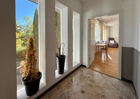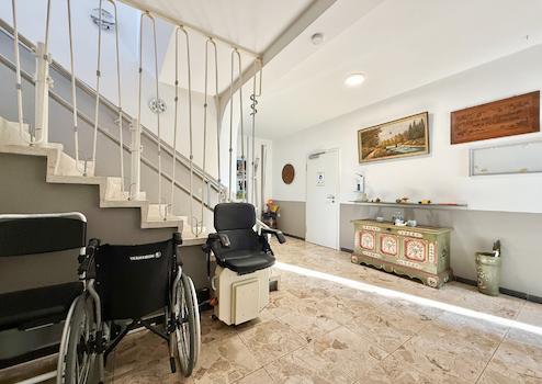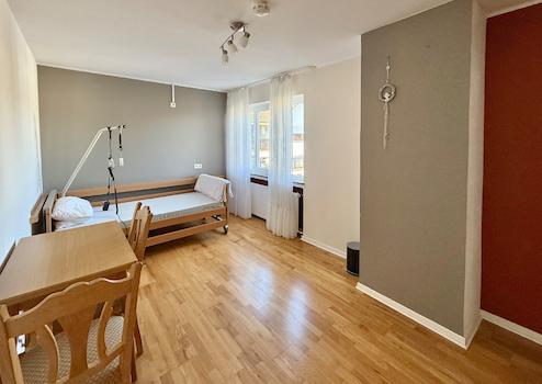 Diese gepflegte und liebevoll modernisierte Immobilie bietet ideale Voraussetzungen für den Betrieb einer Senioren-Wohngemeinschaft. Die Nutzung ist offiziell genehmigt und kann ohne erneute Umwidmung fortgeführt werden. Derzeit stehen 9 Pflegeplätze zur Verfügung – eine Aufstockung auf bis zu 12 Betten ist möglich. Das 1956 errichtete Haus wurde umfassend saniert: neue Elektroinstallationen in EG und OG, Dämmung der Heizkörpernischen, Fassaden- und Kellerisolierung, Neuaufforstung des Hanggartens sowie Kompletterneuerung der Küche. Ein gewarteter, voll funktionsfähiger Aufsitz-Treppenlift sowie zwei Rampen ermöglichen einen barrierefreien Zugang.