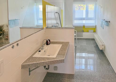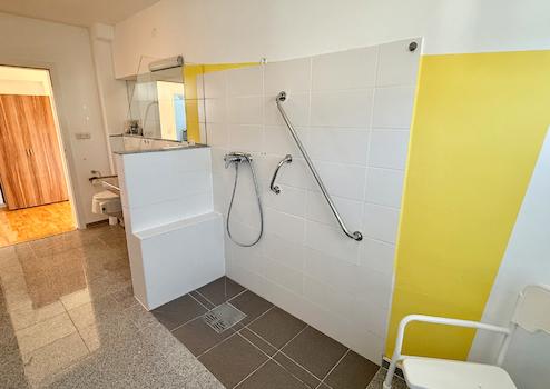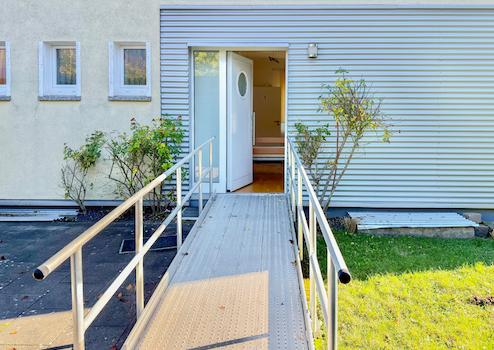Stufenlose Zugänge + zwei Rampen, barrierefreie Räume und Bäder