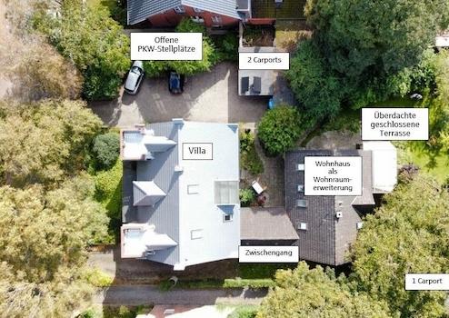 Wohnfläche insgesamt ca. 240 m², Gewerbefläche ca. 110 m², Nutzfläche ca. 75 m², Baujahr Villa ca. 1890, Baujahr Wohnhauserweiterung ca. 1995, Grundstücksgröße ca. 1.450 m², 3 Carports, 4 offene PKW-Stellplätze, 2 Terrassen Richtung Süden, Terrasse Richtung Osten, geschlossener Freisitz (Baujahr ca. 1981), Erdwärmepumpe,