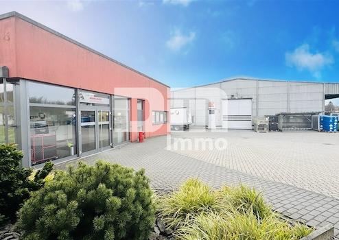 2 Hallen/Stahlbau freitragend nebst Büroräumen etc., vermietet / Option auf Selbstnutzung , Grundstücksfläche Gewerbe 16707 m², Glasfaser in Straße, Bus System im gesamten Objekt, Grundstück vollumzäunt/Doppelstabmatte rundum/Schiebetor E-Antrieb - ca. 10m/Zugangskontrolle, Trafostation: aktuell 450 KV . möglich 650 KV, hinter der Halle/ Straße Zufahrt/ Lagerplatz gepflastert, Haupthof mit großem Umlageplatz/Lagerplatz