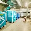 Darüber hinaus punktet Halle 1 mit 4x Rolltoren Aluminium isoliert, 5x Zugang/Ausgang 1m, Ringleitung/ Luftdruck rundum, Abluft mit Wärmerückgewinnung BJ 2013, 2x Schraubenkompressoren/2x Trockner, Stromschienenringsystem, LED Beleuchtung und Druckluft Anschlüssen.