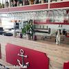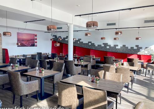 Restaurant I: 163 m² + Außenterrasse. 40 Sitzplätze innen und 32 Sitzplätze außen. Dazu eine weitere, von der Gemeinde angepachtete Außenterrasse auf der anderen Seite der Promenade, am Strand.