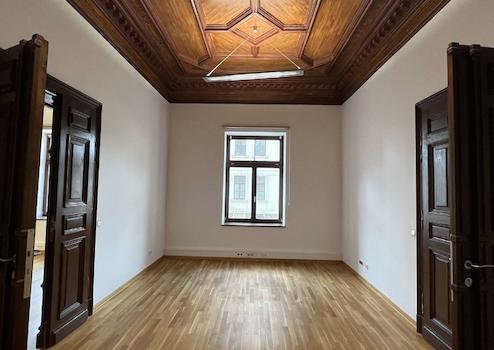 Die Räumlichkeiten bestechen durch die zahlreichen Wandvertäfelungen und der Stuckverzierung an den Decken. Durch die Aufteilung des Gewerbes ist eine Nutzung vielerlei möglich.