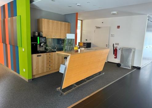 Besonderes Highlight sind die durchdachten Aufenthaltsbereiche: Begrünte Außenflächen mit Ruhezonen fördern Austausch und Entspannung, während ein hauseigenes Betriebsrestaurant mit sonniger Terrasse zusätzliche Aufenthaltsqualität bietet. Tiefgaragen- und Außenstellplätze sowie Fahrradabstellmöglichkeiten sorgen für eine optimale Erreichbarkeit.