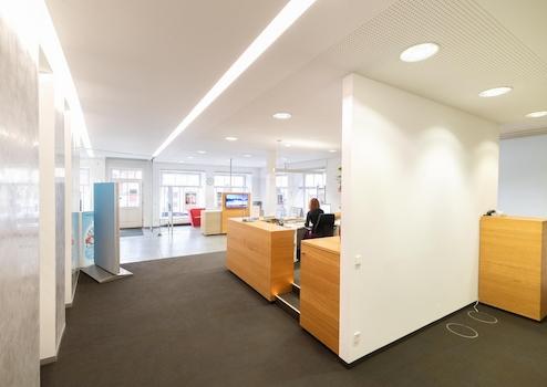 Die Räume sind sehr hell und bieten eine moderne und zeitgemäße Ausstattung mit hochwertigen Bodenbelägen und Beleuchtungseinrichtungen.