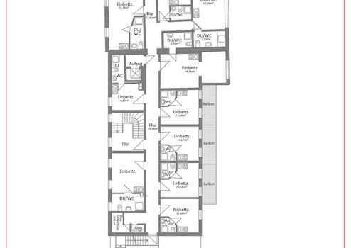 * das Gebäude verfügt über 18 Einzelzimmer, jeweils ausgestattet mit:
