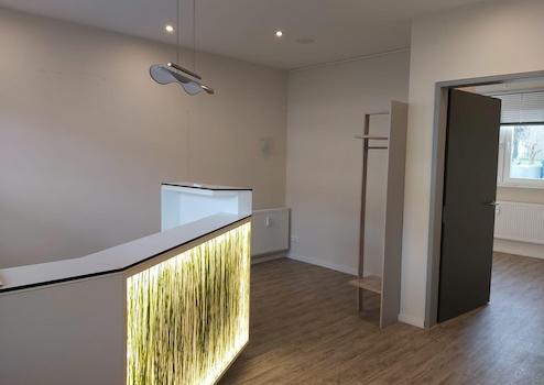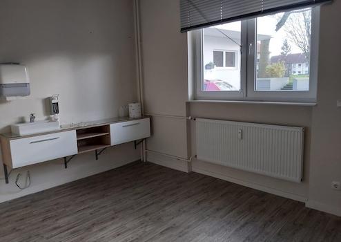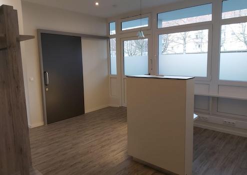 Die barrierefreien Räumlichkeiten haben eine Nutzfläche von ca. 85 qm, befinden sich im Erdgeschoss eines Wohn-/Geschäftshauses und können ab 1. November 2025 angemietet werden.