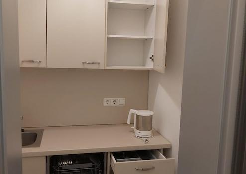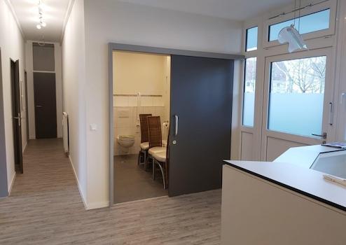 Die Einheit verfügt über drei Räume, einen großzügigen Empfangsbereich, einen Flur, zwei Sanitärbereiche, eine Teeküche mit Geschirrspüler sowie einen Lagerraum. Die Räume verfügen über einen separaten Mietereingang. Eine Nutzung als Büro- oder Praxisgemeinschaft ist möglich.