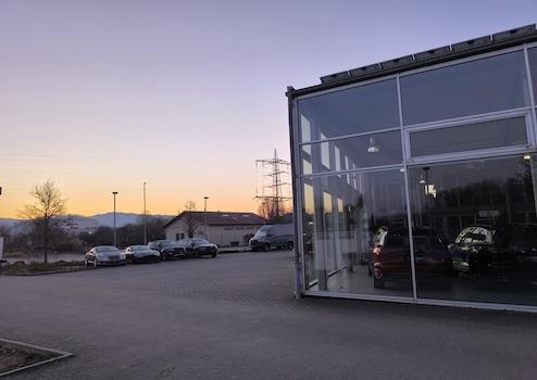 Großzügige Außenfläche für Fahrzeugpräsentationen