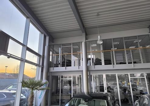 Willkommen in diesem im Jahr 2000 erbauten, außergewöhnlichen Autohaus, das Ihnen eine ideale Kombination aus großzügigen Präsentationsflächen, modernen Bürobereichen und optimaler Sichtbarkeit bietet.