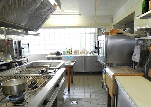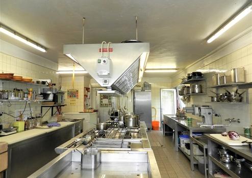 * Küche: ca. 62 m² zzgl. Kühlhaus, Kaltgetränke-Theke, Abstellraum und Vorratsräume zusammen ca. 30 m² (Kochen auf Gas)