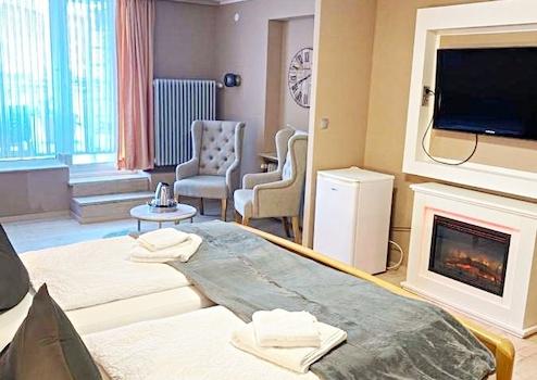 - 3 Treppenhäuser, kein Aufzug (auch baulich schwer zu integrieren, und wenn doch, dann nur für einen Teil der Zimmer ohne Stufen erreichbar), Treppenlifter zum 1. OG von der Ebene der Rezeption aus vorhanden