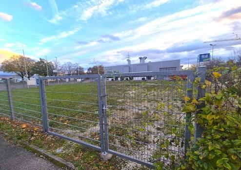 Die Fläche ist vollständig eingezäunt, befestigt und verfügt über Strom- sowie Wasseranschluss.