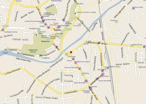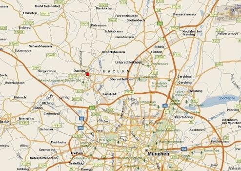 Dachau liegt an den Autobahnen Stuttgart, Nürnberg und Deggendorf, ca 17 km von München entfernt.