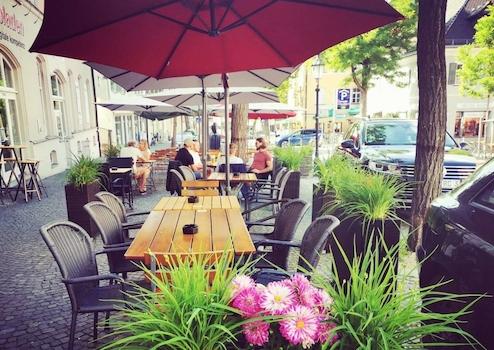 Der Gastraum verfügt über eine Fläche von rund 53 Quadratmetern und bietet Platz für ca. 60 Sitzplätze im Innenbereich. Besonders attraktiv ist der großzügige Außenbereich, in dem sich etwa 15 Tische mit je 4 Sitzplätzen aufstellen lassen. Hier können Gäste die besondere Atmosphäre der Altstadt genießen – bis 23:00 Uhr ist die Außennutzung genehmigt, was gerade in den warmen Monaten für zusätzliche Frequenz sorgt.