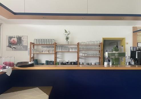 einen großzügigen, hellen Gastraum mit Thekenbereich,