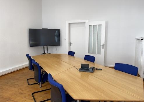 Das Büro verfügt über eine eigene Toilette. Der Meetingsraum kann eventuell nach Absprache mit dem Nachbar täglich gemietet werden.
